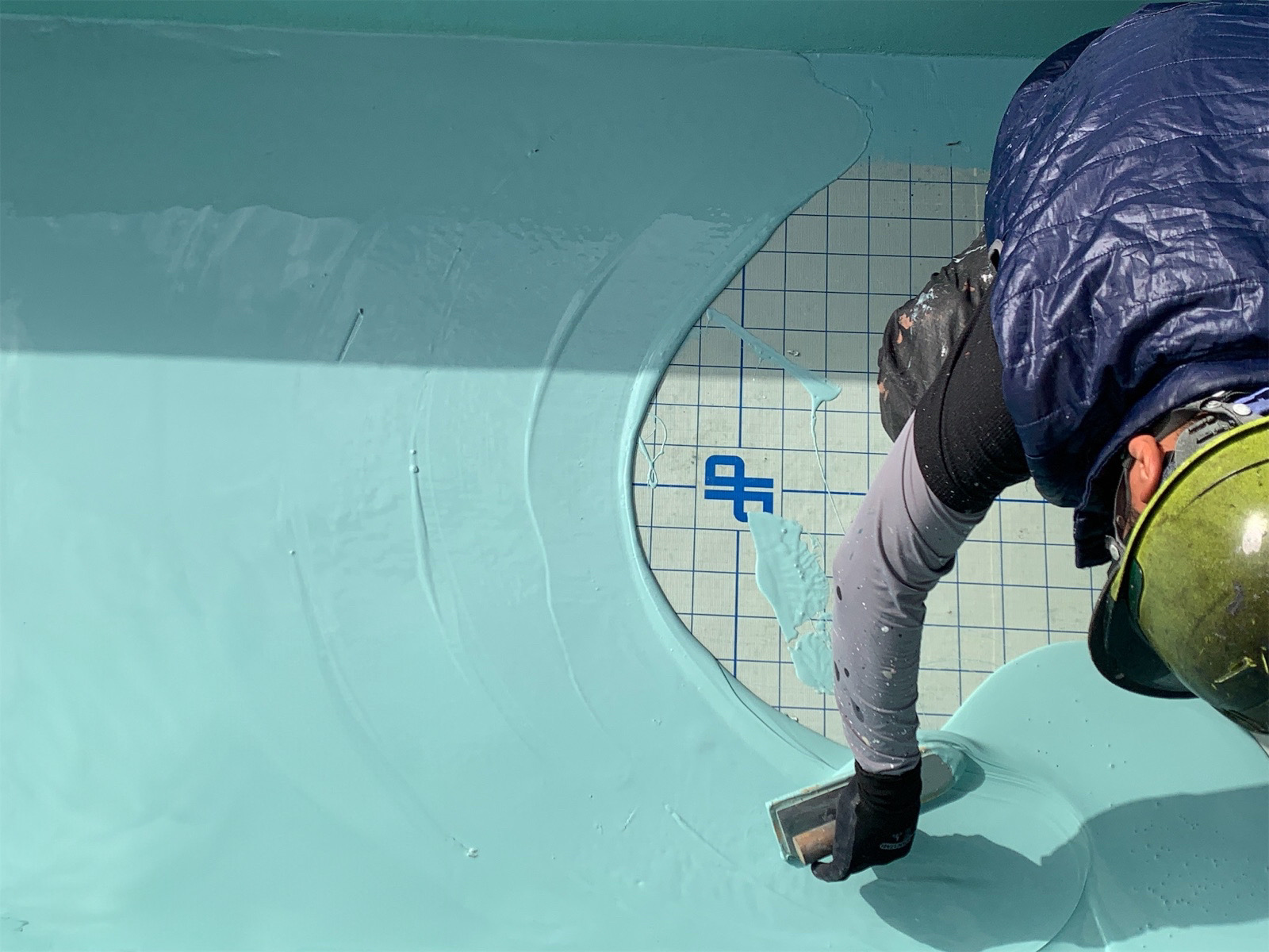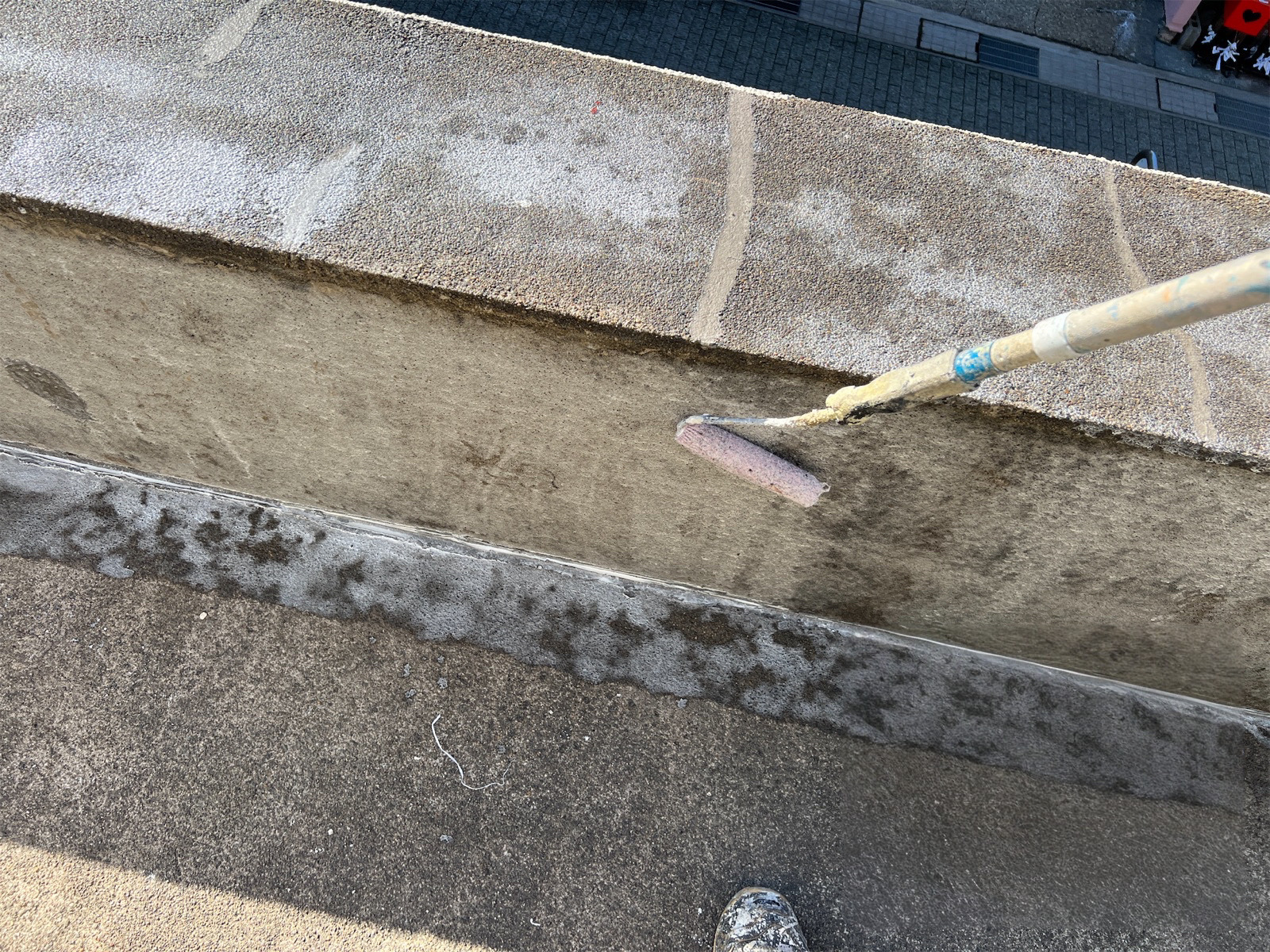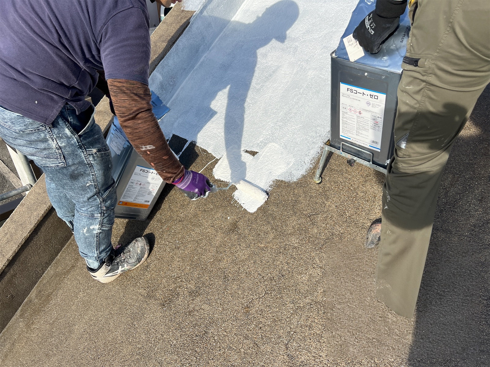 防水材が均等になるように塗布していきます。