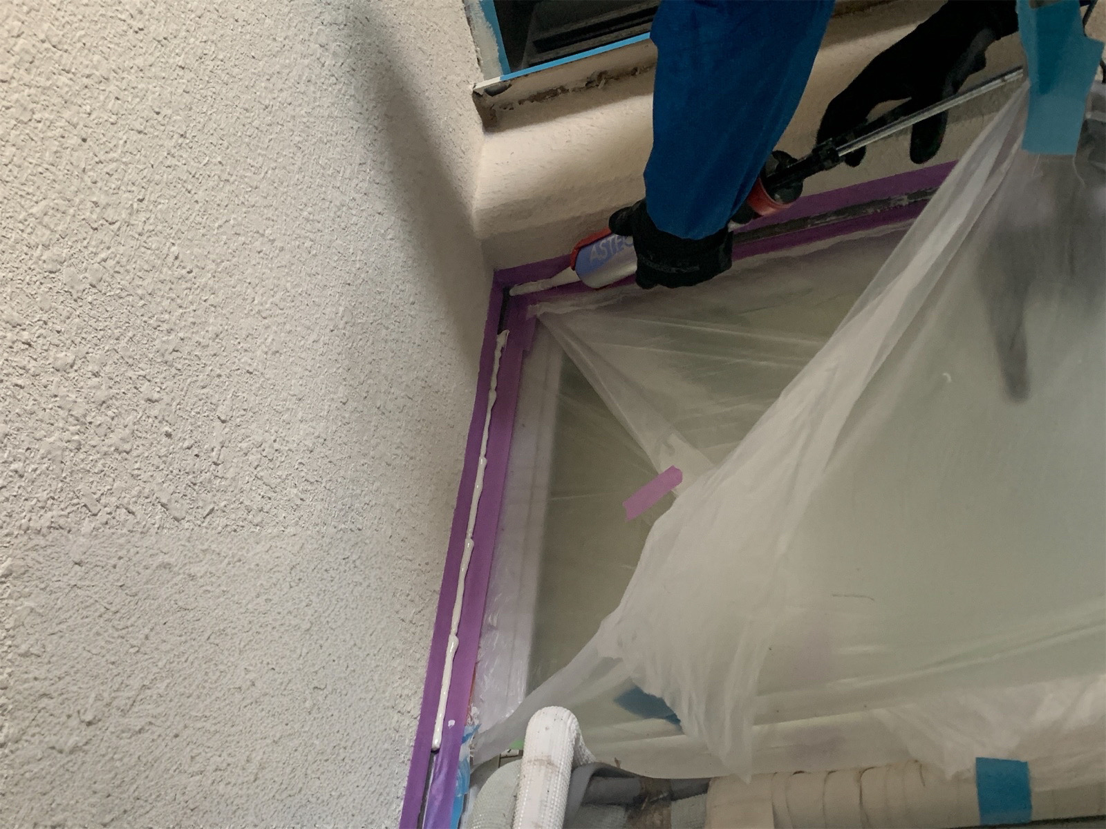 既存コーキングを撤去後、プライマー塗布後新規コーキングを打っていきます