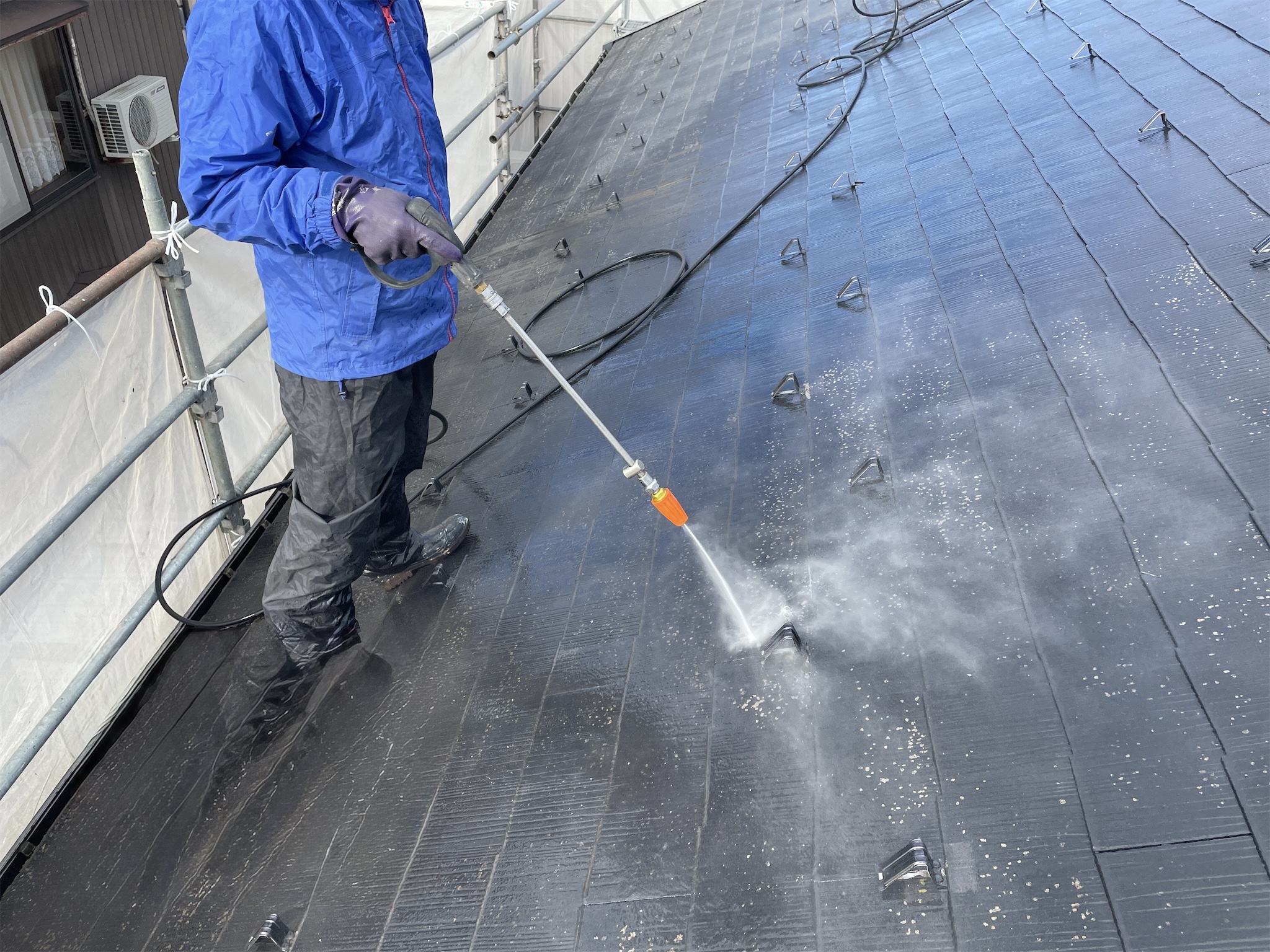 外壁のほこりや汚れを高圧の水で洗い流します。