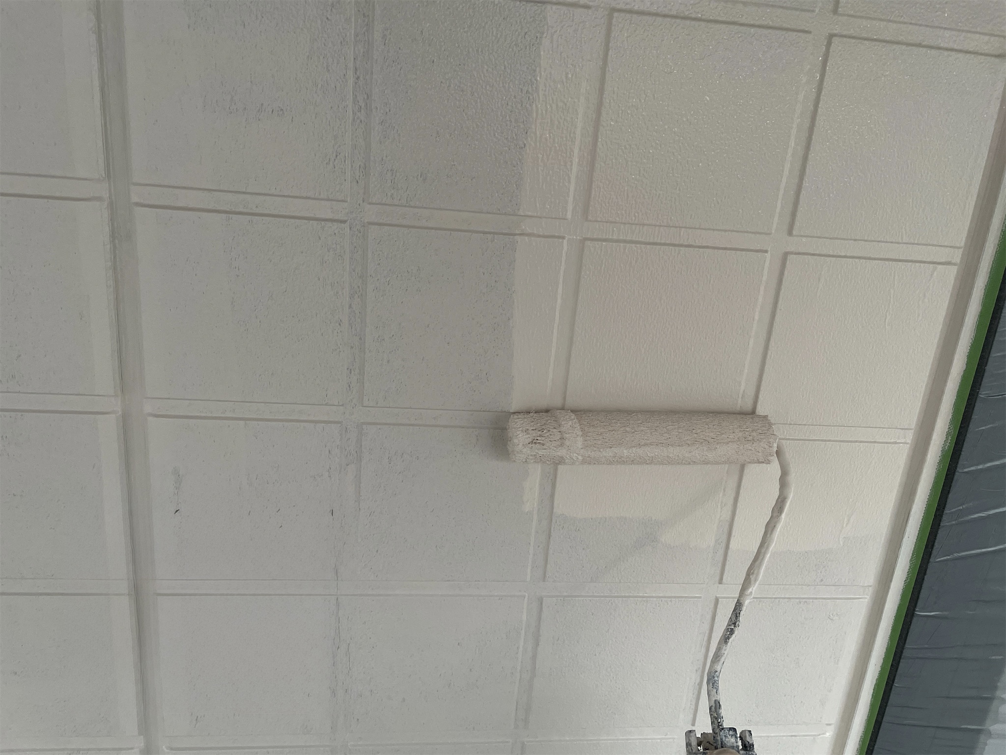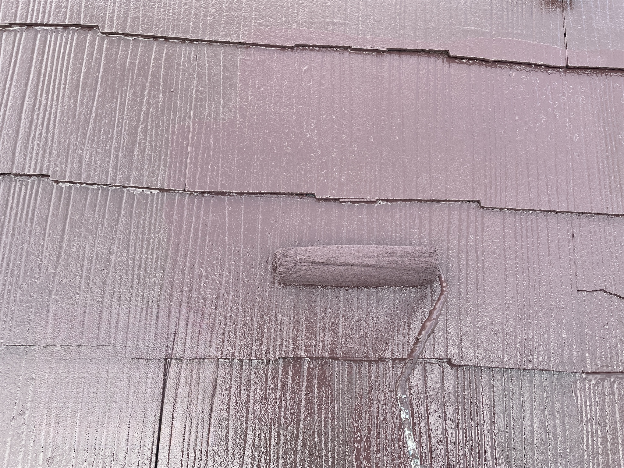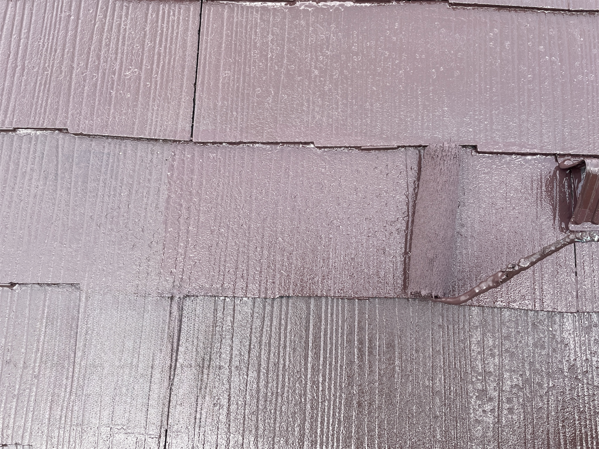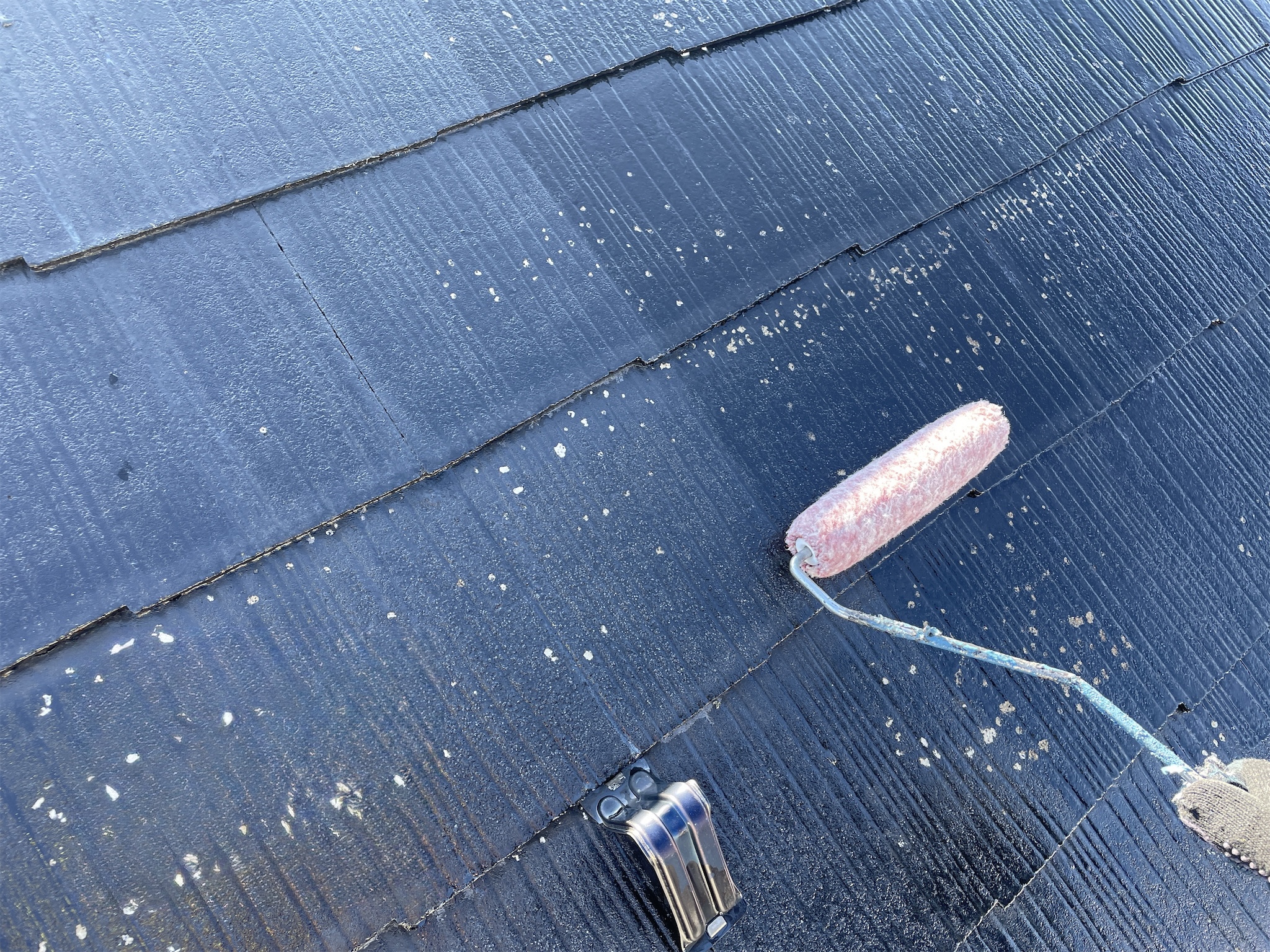 屋根にシーラーを塗装します。しっかりとツヤが出るまで何回も塗り重ねます。