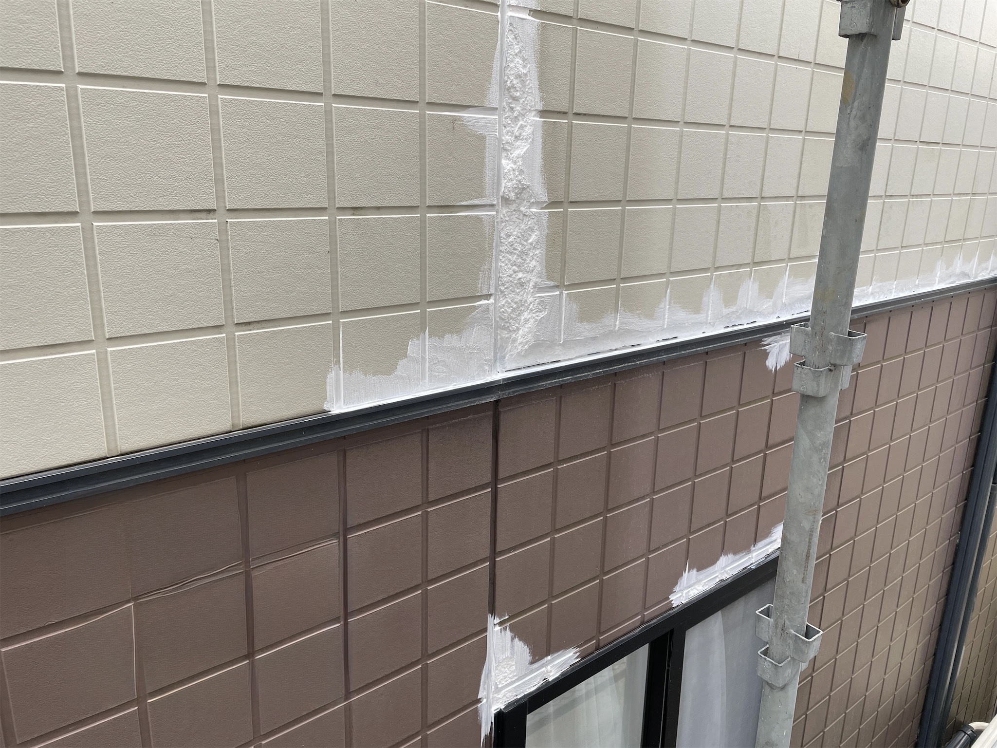 外壁の傷んだ部分を補修材を塗り下地処理します。