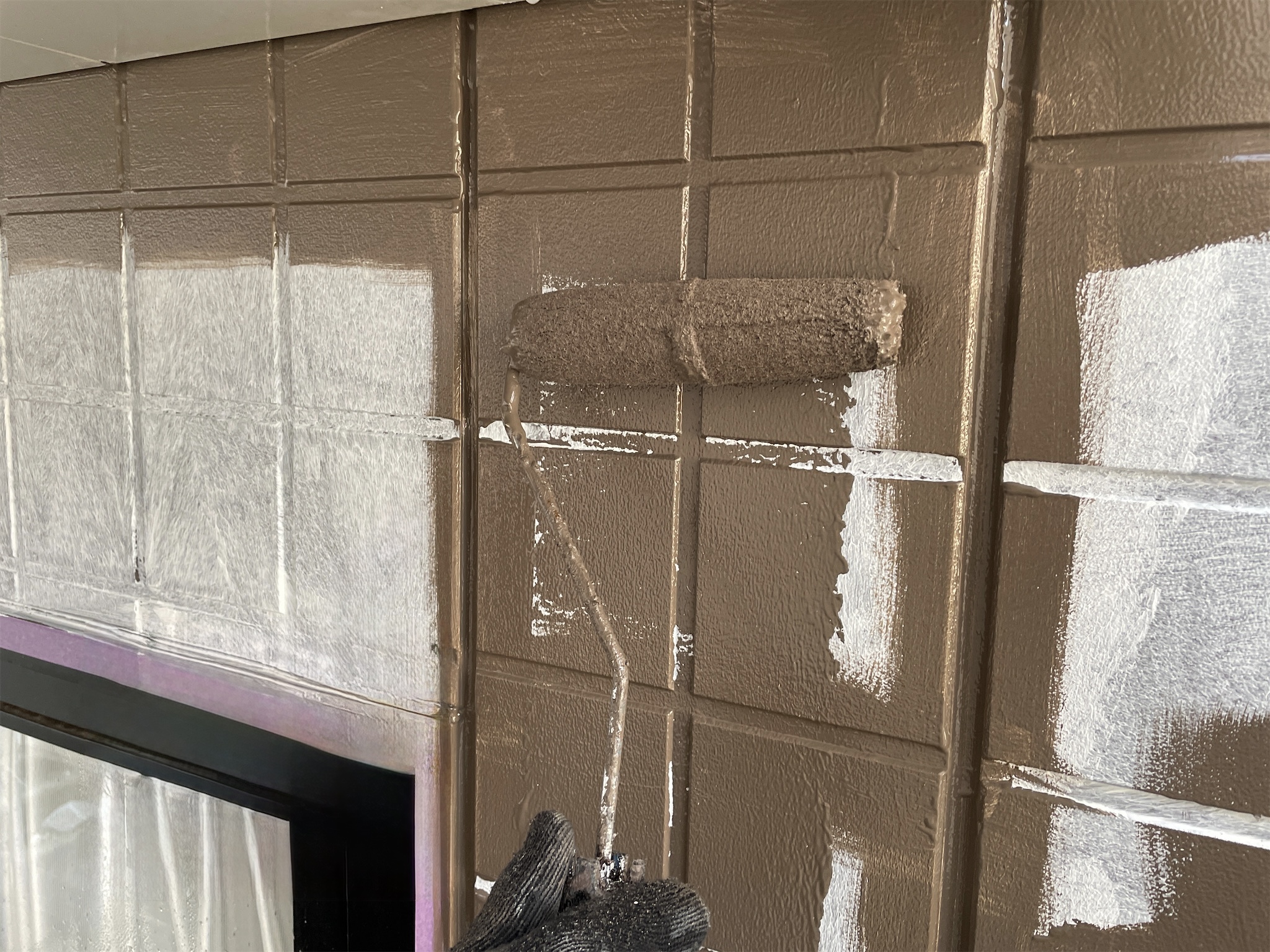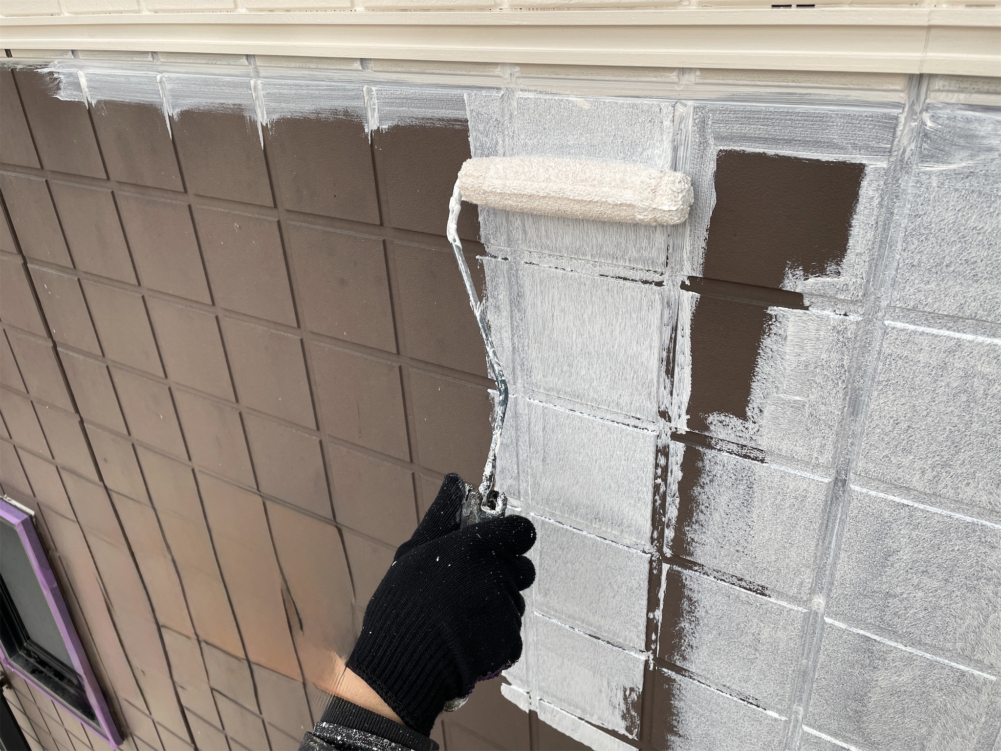 外壁に下塗り材を塗り、外壁と新しい塗料との密着をよくします。